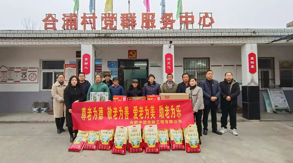 2022年1月22日,在虎年春节即将来临之际,合肥中团市政工程有限公司在总经理黄勤柱的带领下前往巢湖市柘皋镇合浦村组织开展春节“关爱乡村五保老人”慰问活动,为合浦村20余位五保户老人送去冬日温暖和新春祝福。