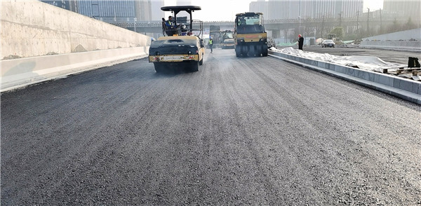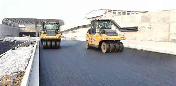 本次施工内容为道路路面沥青砼施工。根据道路设计要求:机动车主道路面车行道结构上面层为4cmSMA-13沥青玛蹄脂碎石混合料加防火剂,中面层为6cmAC-20C中粒式SBS改性沥青混凝土,下面层为8cmAC-25C粗粒式沥青混凝土;下穿隧道设计为AC-20SMA-13加防火剂,非机动车道路面结构上面层为4cmAC-10细粒式沥青混凝土,底面层为6cmAC-20中粒式沥青混凝土。