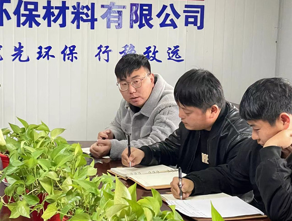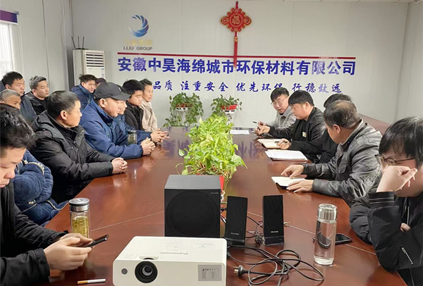 2022年2月19日上午,安徽中昊海绵城市环保材料有限公司召开2月份前场复工会暨安全会议,会议由公司副总程振国主持,前场负责人及前场全体员工、外租机械手、民工队、车队等工作人员参加会议。