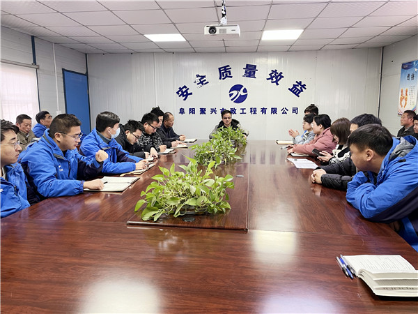 2022年2月24日,阜阳聚兴市政工程有限公司召开节后复工会议暨安全会议,会议由总经理卫永培主持,公司各部门负责人及全体员工参加。