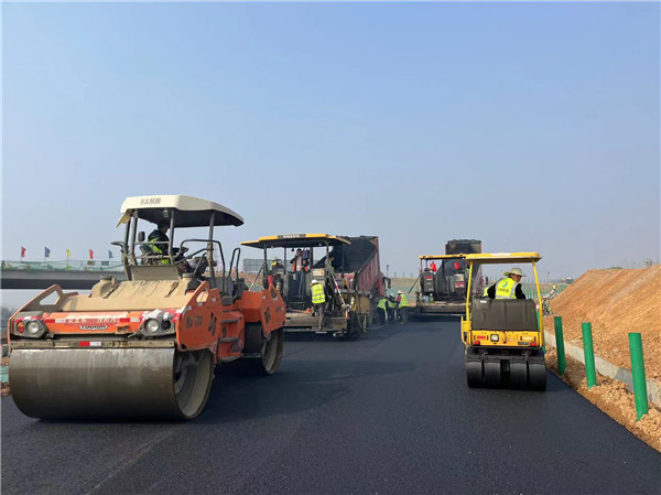 我司主要负责该项目沥青路面施工,含沥青砼的生产,运输、摊铺、碾压、成型等。项目设计底层为AC-25C粗粒式沥青混凝土,厚度8cm;中层为AC-20C中粒式改性沥青混凝土,厚度6cm;面层为AC-13C细粒式改性沥青混凝土,厚度4cm。