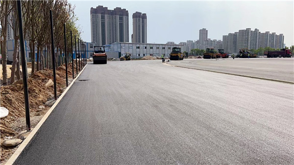 该工程道路结构层为:底层AC-20C普通沥青砼,厚度6cm;面层AC-10C(SBS)改性沥青砼,厚度3cm。运动场结构层为:底层AC-16C普通沥青砼,厚度5cm;面层AC-10C普通沥青砼,厚度3cm。施工面积约30000㎡。
