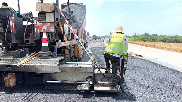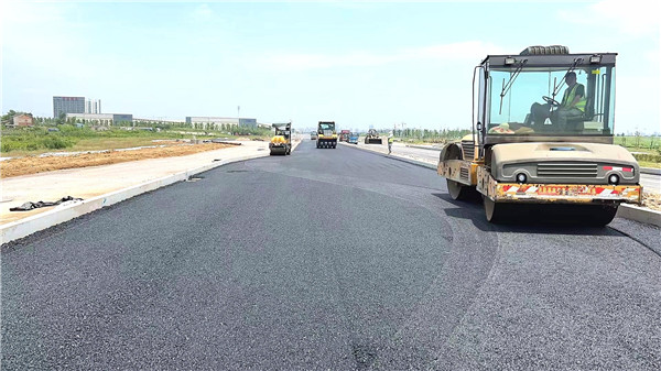 我司本次施工内容为道路路面沥青砼施工。根据道路设计要求:机动车道路面结构上面层为4cm细粒式沥青混凝土AC-13(C)(SBS改性沥青),下面层为8cm粗粒式沥青混凝土AC-25(C);非机动车道路面结构上面层为4cm细粒式彩色沥青混凝土AC-13(C),下面层为5cm中粒式沥青混凝土AC-16(C)。