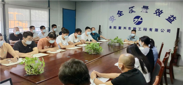 2022年6月28日,阜阳聚兴市政工程有限公司召开本月工作会议暨安全会议,会议由总经理卫永培主持,公司各部门负责人及全体员工参加。
