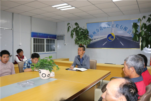 10月19日晚上8点,力达市政召开本月例会。参会的人员有卫总、黄总、车队杨队、前场技术员、机械手、民工队及后场各部门人员。