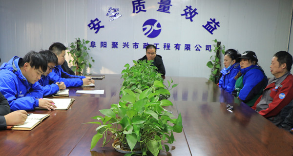 2022年11月30日上午,聚兴市政召开11月份全体员工工作会议暨安全会议,会议由总经理卫永培主持,副总李磊、各部门员工参加会议。