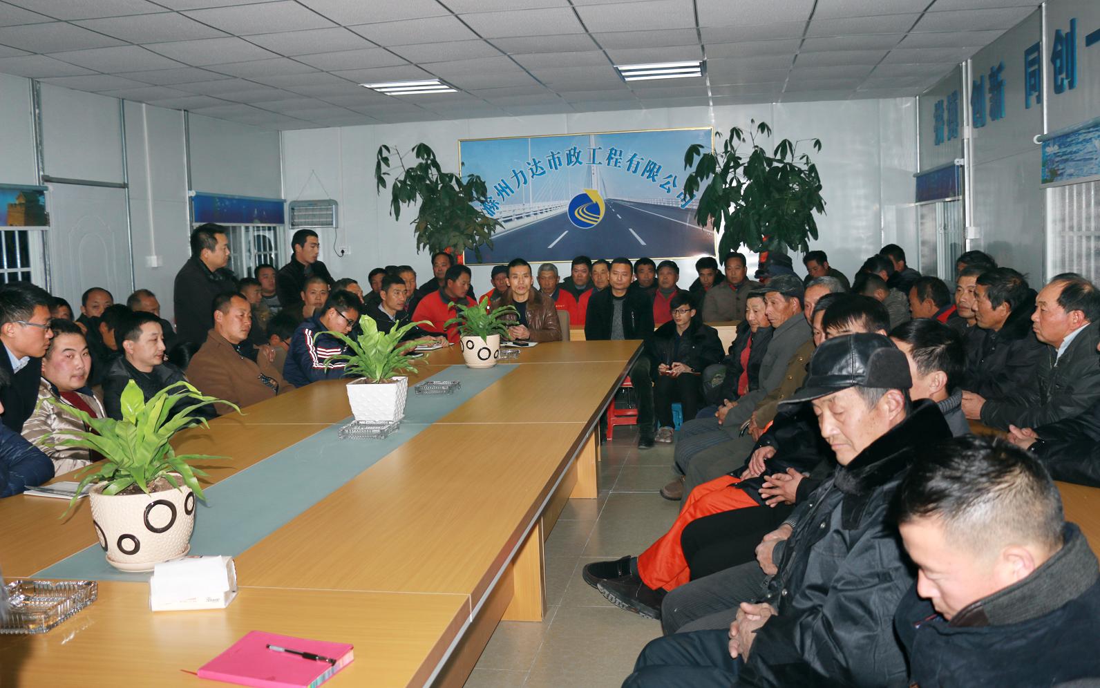 会议人员:卫总、黄总、杨主任、杨队、原材料供应商胡总及公司全体人员。会议由力达市政卫总主持。