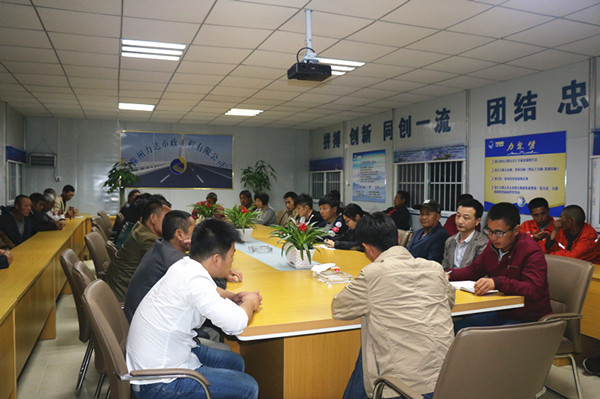 卫世贵在会上说道,在上班时间内,工作人员不可擅自离岗;要做好卫生,不可乱丢垃圾,保持站内环境整洁;实验室收料时,要取样品,测含水量;此外,他还补充说,大家要重视安全问题,避免安全事故的发生。运输车队黄队长提出,在进行工程施工时,施工人员切不可站在摊铺机后方,以免发生意外。