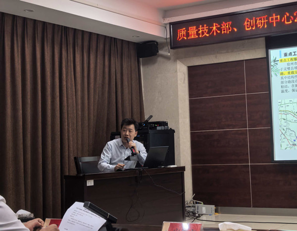 首先,栗部长详细梳理了重点工程服务与监督、制度监督与执行、“四新技术”推广应用等方面的工作成效,同时以质量问题为导向,精准分析了当前工作存在的短板与不足,明确要求各工程部要严格落实“事前控制、事中控制、事后控制”全链条管控机制,确保形成闭环管理。他强调,下一阶段,质量技术部将组织开展“四新技术”类现场施工观摩教学活动,同时启动质量技术人才选拔工作,部门将以制度执行为抓手,以“教学做考”为路径,以人才储备为根基,推动质量工作提质增效。