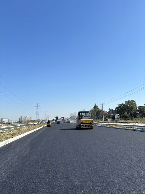 该项目位于芜湖市鸠江区汤沟镇,项目内容主要包括道路主体工程、桥梁与涵洞工程、交通工程与安全设施、市政管网综合工程、绿化与景观工程及其他附属工程。我司主要负责该项目的沥青路面摊铺。道路结构层分为:机动车道:8cmAC-25C+6cmSBSAC-20C+4cmSBSSMA-13,非机动车道:5cmAC20C+4cmAC-13F。总面积约为8万平方。截止目前,底层已完工,中层正在施工中。