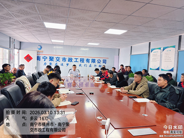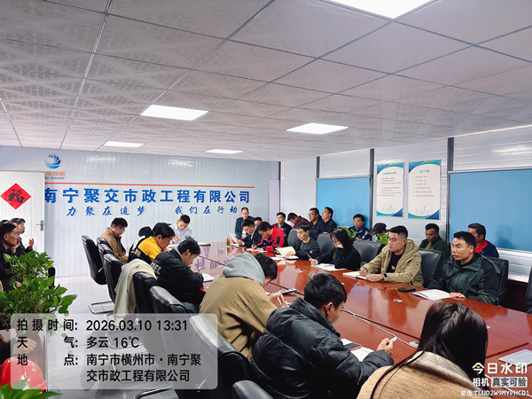 3月10日,南宁聚交召开3月全体员工安全工作例会,会议全面部署 2026 年重点工作任务,动员全体员工收心归位、实干担当,以昂扬奋进姿态推动年度工作开好局、起好步。会议由总经理蒋友情主持,集团省外沥青站分管领导卫俊出席,全体员工参加。