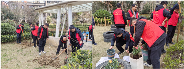 活动现场春意盎然、气氛热烈。在专业技术人员的指导下,同志们热情饱满、分工协作,严格遵循植树规范,挥锹铲土、扶苗定植、培土夯实、提水浇灌,每一道工序均有条不紊、细致严谨。大家互帮互助、默契配合,以实干诠释担当,用汗水浇灌希望,迅速完成了植树任务,现场勾勒出“党建红”与“生态绿”交相辉映的美丽画卷。