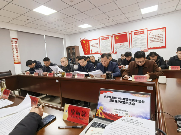 为深入学习贯彻习近平新时代中国特色社会主义思想,全面贯彻落实党的二十届四中全会精神和中央八项规定精神,推进作风建设常态化长效化,同时,进一步加强党员思想政治建设,提高支部党建工作水平,2026年3月16日下午,力聚机关党支部在集团7楼会议室召开了2025年度组织生活会暨民主评议党员大会。会议由支部书记黄伦主持,集团党委主要领导及机关支部全体党员参会,新年社区党建指导员张梦琦出席并指导会议。