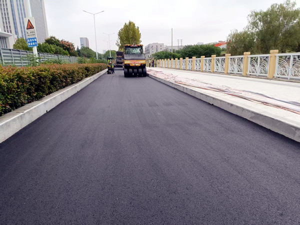 我司承接该工程沥青路面施工工作,含沥青砼运输、摊铺、碾压、成型等。其中,机动车道结构层为:8cmAC-25+6cmAC-20+4cmAC-13改性;非机动车道结构层为:5cmAC-16+3cmAC-13。