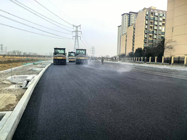 我司承接该工程沥青路面施工工作,含沥青砼生产、运输、摊铺、碾压、成型等。施工主要用料为4cmAC-13SBS+6cmAC-20SBS+8cmAC-25。总面积约4万平方。