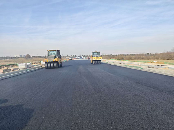 该项目位于合肥市经开区新桥科创示范区,为新建道路,道路长约为1.2KM,总面积为2万平方,道路结构设计为:机动车道结构层 8cmAC-25+4cmAC-13改性,非机动车道结构层5cmAC-16+3cmAC-10 。截止到目前,底层正在施工中。