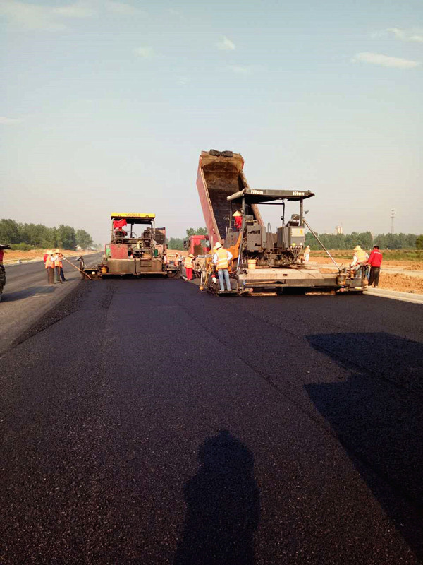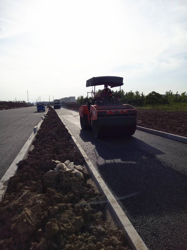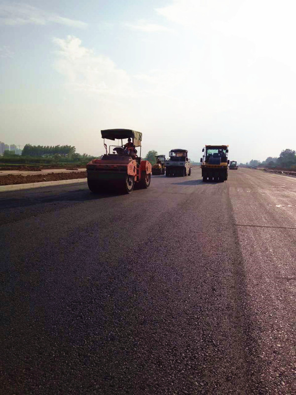 2017年5月中旬,舒城江城市政承接的六安集中区示范园区前进路工程,施工面积67000平方,工程分为主车道和辅道,主车道底层采用7cm、AC-25C型号普通沥青,中层5cm、AC-20C型号普通沥青,面层采用AC-13C型号改性沥青,慢车道采用5cm、AC-16C,3cm、AC-10F沥青混合料铺设。