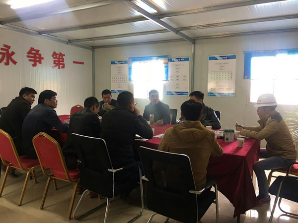 会上,各负责人就各自的工作情况进行了汇报,水稳摊铺已完成了70%,灰土已全部完成,桥涵只剩回填。项目总工就现场存在的技术问题指出并阐明了解决方法。生产经理钟先胜就现场机械管理进行了汇报,机械调度及时,基本满足现场施工要求。试验室吴超就近期的试验检测情况进行汇报,指出水稳摊铺完及时摊铺水稳布,保证在第三方取芯检查中一次性通过。成本部负责人就近期的计量情况进行了汇报,经郭经理及时与监理沟通协调,第三次计量已顺利报送。安全部负责人表示安全工作需要大家的配合,安全问题无小事,从自己做起,不带安全帽不须进施工现场,不穿反光背心不可出现在水稳摊铺现场。财务兼后勤部长黄海军表示,在接下来工作中,财务部将注重效率,保证施工的正常进行。