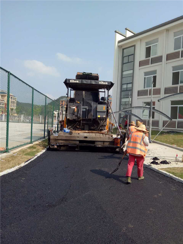 承接金寨县青山镇青山中心小学沥青道路工程,施工面积约2400平方,采用厚6cm AC-13沥青混合料摊铺。