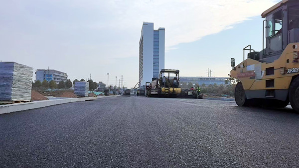 我司主要负责该项目路段的沥青摊铺。承担的主要施工内容为:沥青砼的运输、摊铺、碾压成型等。根据道路设计要求,机动车道结构层为:6cmAC-20+4cmAC-13,施工面积约为7000平方。